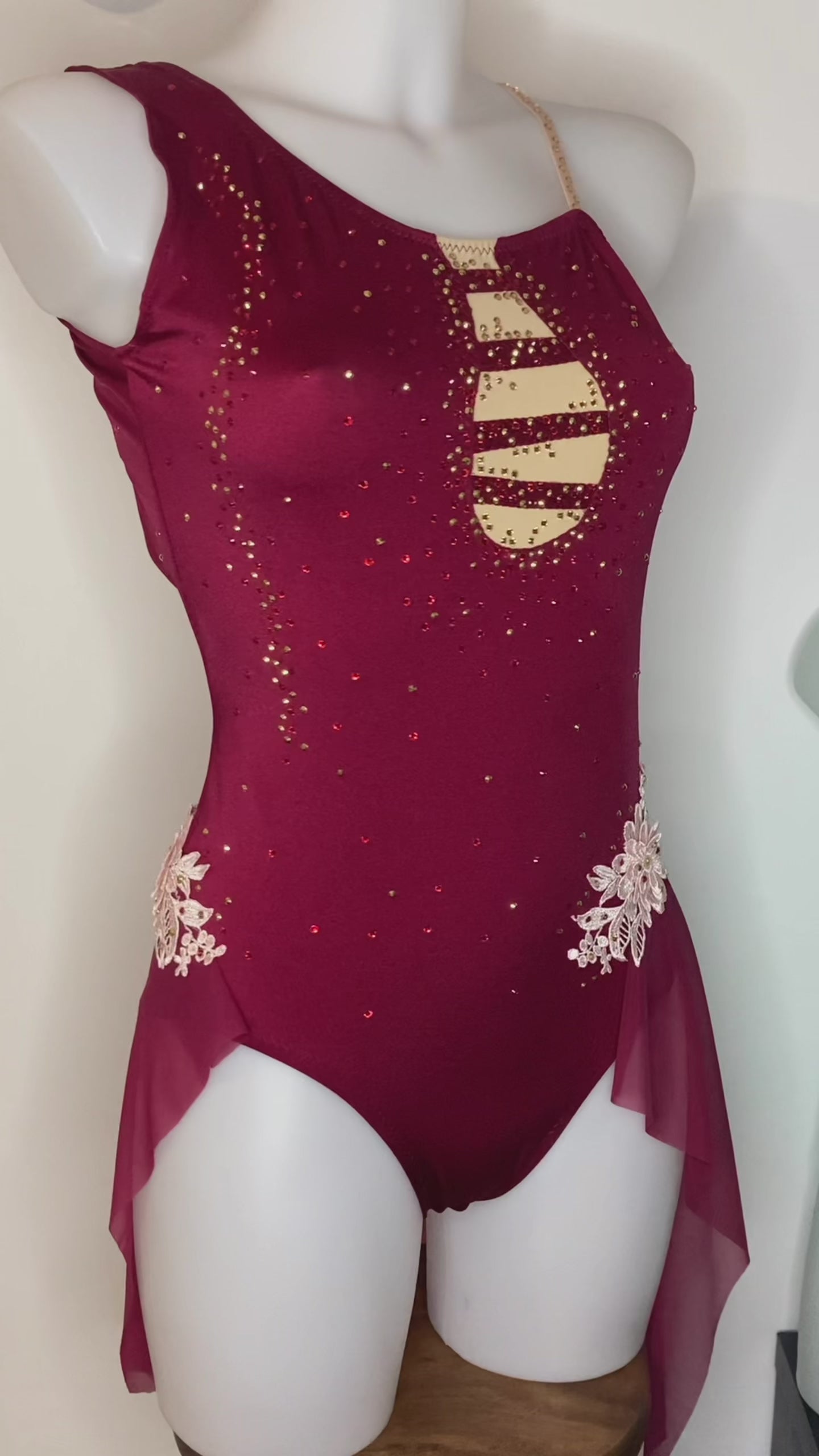 Ce justaucorps bordeaux profond est magnifié par une jupe en voile léger à la coupe dégradée, qui apporte légèreté et mouvement à chaque geste. Sa silhouette élégante et artistique met en valeur la grâce et l’expression de l'artiste.